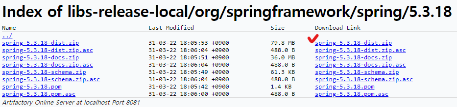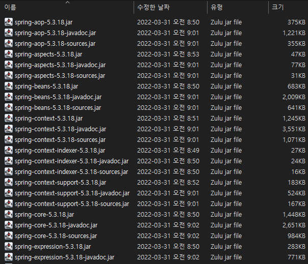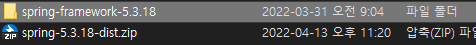 "5.3.18" 선택 후 "spring-5.3.18-dist.zip" 파일 다운로드